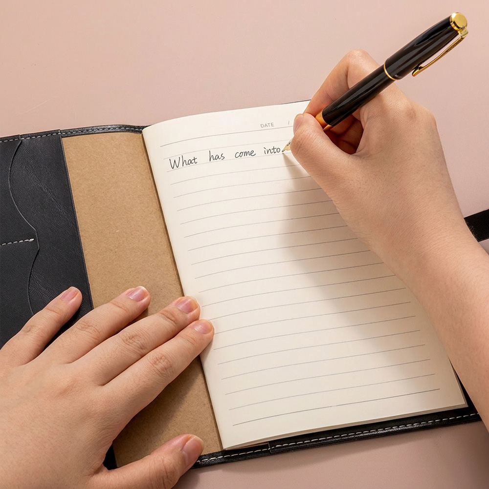 Quality Material - Crafted from durable crazy horse pattern PU leather case and A5 notebook, this notebook is both stylish and resilient. The leather finish offers a rich texture, ensuring it withstands daily use while maintaining its beauty. The pen & card holders keep pens and important cards within easy reach.